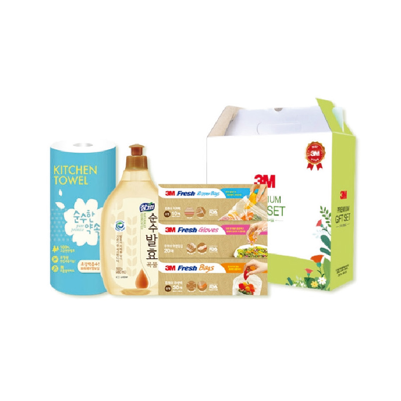 • •Size : 240x242x96 mm / 1Box : 20EA •3M 후레쉬 지퍼백 10매, 3M 후레쉬 장갑 20매 •3M 후레쉬 위생백 30매, LION 곡물 세제 500ml 용기 •순수한약속 키친타올 1롤(65매)